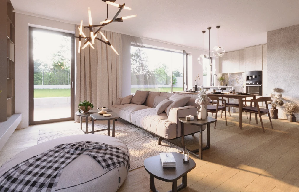 Vysoký standard zahrnuje energeticky šetrné topení, klimatizaci, kvalitní materiály použité při stavbě i v interiéru. Komorní rozsah projektu navíc umožňuje vyjít vstříc vašim individuálním přáním.
